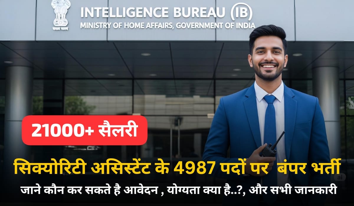 IB Security Assistant Recruitment 2025: भारत सरकार के गृह मंत्रालय (MHA) के अंतर्गत इंटेलिजेंस ब्यूरो (IB) ने Security Assistant/Executive के 4987 पदों पर भर्ती के लिए अधिसूचना जारी की है। यह भर्ती देश के विभिन्न राज्यों में स्थित Subsidiary Intelligence Bureaux (SIBs) के लिए की जा रही है। इस लेख में आवेदन प्रक्रिया, पात्रता, आयु सीमा, चयन प्रक्रिया, परीक्षा पैटर्न, सैलरी, आवेदन शुल्क सहित हर महत्वपूर्ण जानकारी दी गई है।